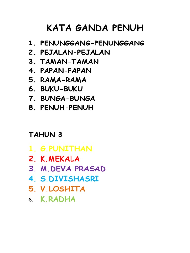 Related : Kata Ganda Penuh Tahun 3 - Tahap 1 kata ganda penuh tahun 3..