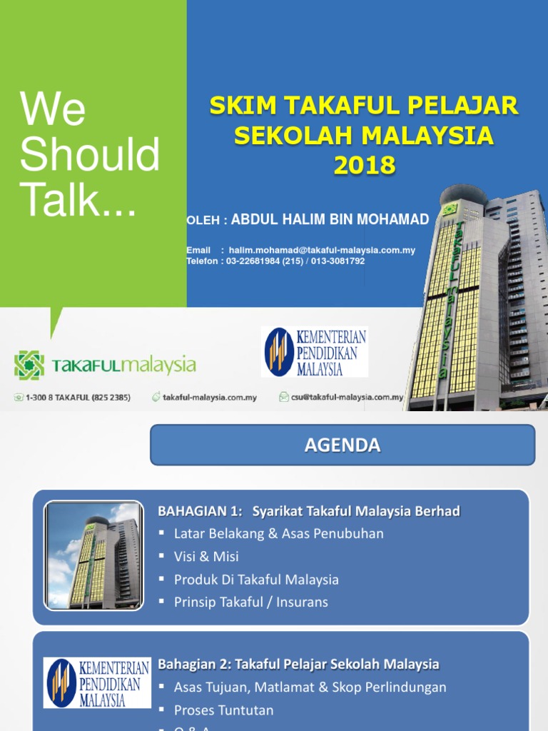 Related : Skim Takaful Pelajar Sekolah Malaysia : Commonly referred to as syarikat takaful or takaful malaysia) is a malaysian takaful company, the first of its kind in the country..